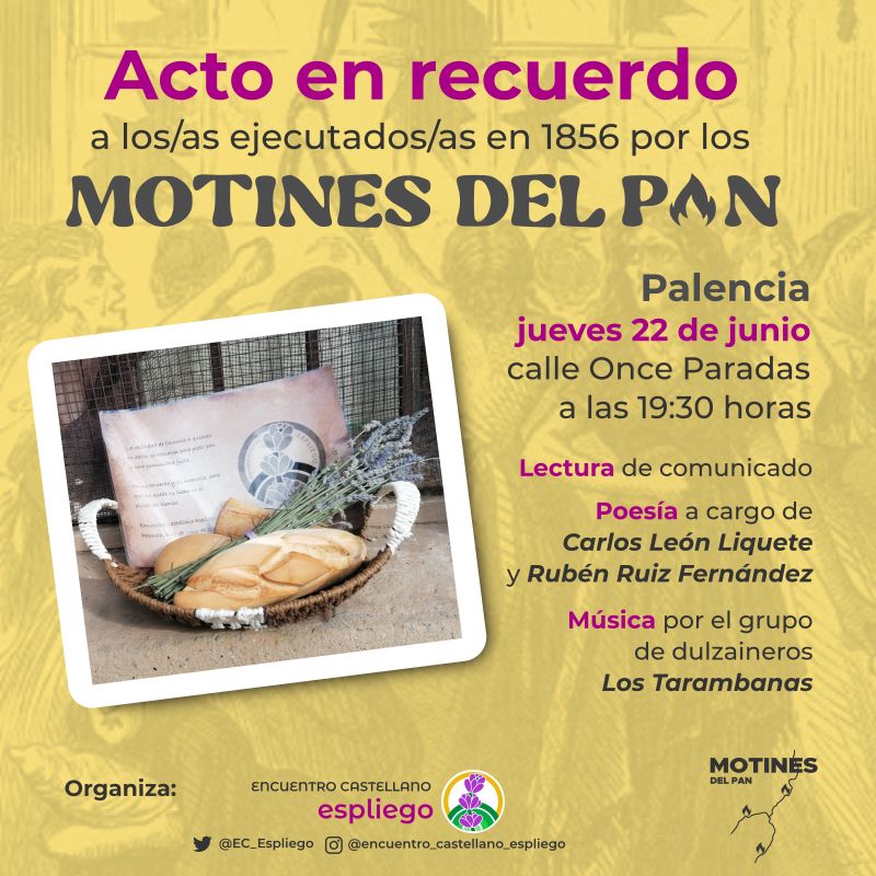 Distintos eventos programados para el 22 de junio en Palencia y el 30 de junio en Valladolid para conmemorar los Motines del Pan.